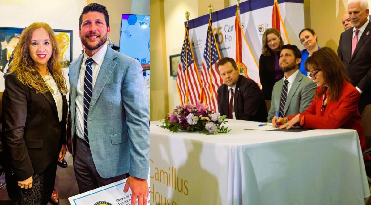 The press conference held at Camillus House featured the two devout public servants thoroughly committed in working together to shape statewide and national responses to this crime, in a united commitment to expanding investigations, protecting the Florida community, and enhancing survivor support. In a brief conversation with the Attorney General James Uthmeier, Professor Pati, also on behalf of Dean Tarlika Nuñez-Navarro, thanked him for his support of St. Thomas University College of Law, and for his dedication to a bipartisan commitment to combatting human trafficking.